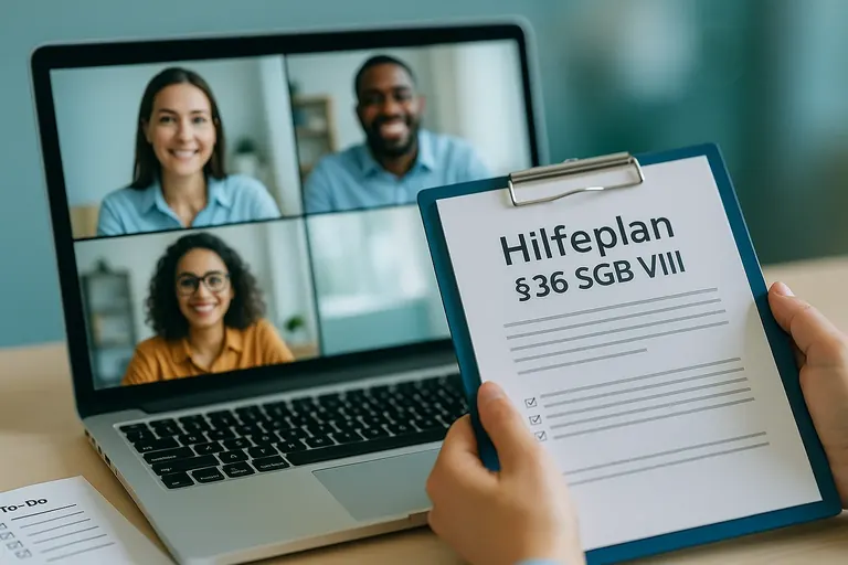 Sie bekommen einen strukturierten Hilfeplan mit klaren Ressourcen-, Ziel- und Maßnahmeformulierungen. Grundlage sind deine Fachinformationen (Fallakte, vorhandene Protokolle, Bericht der Einrichtung). Die Abstimmung kann komplett online laufen.