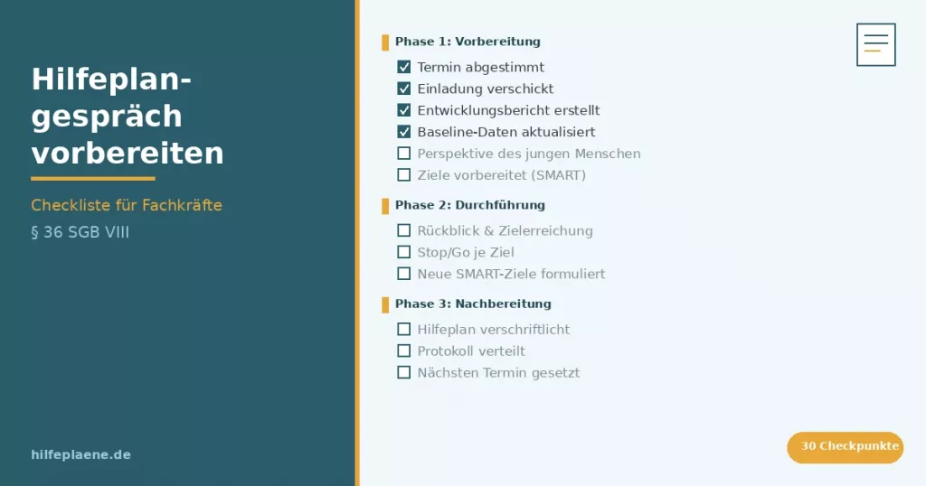 Wer hingegen strukturiert vorbereitet, schafft die Grundlage für ein Gespräch, das zu verbindlichen, messbaren Ergebnissen führt. Das ist kein Perfektionismus – es ist fachlicher Standard nach [§ 36 SGB VIII]